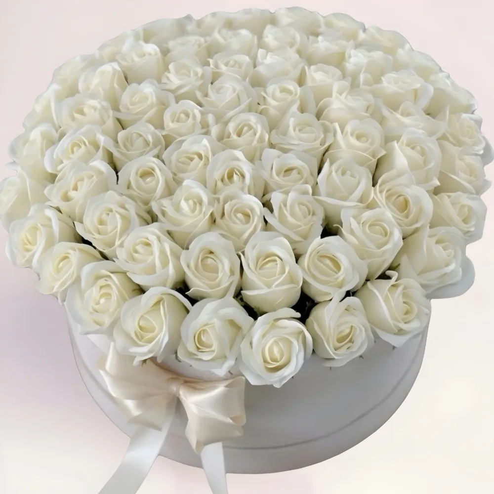 Композиции из большого количества цветов всегда воспринимаются как нечто особенное. 101 белая роза в коробке сочетает в себе масштабность, эстетику и продуманный формат. Такой букет выглядит целостно и торжественно, не требует дополнительного оформления и сразу готов к вручению.