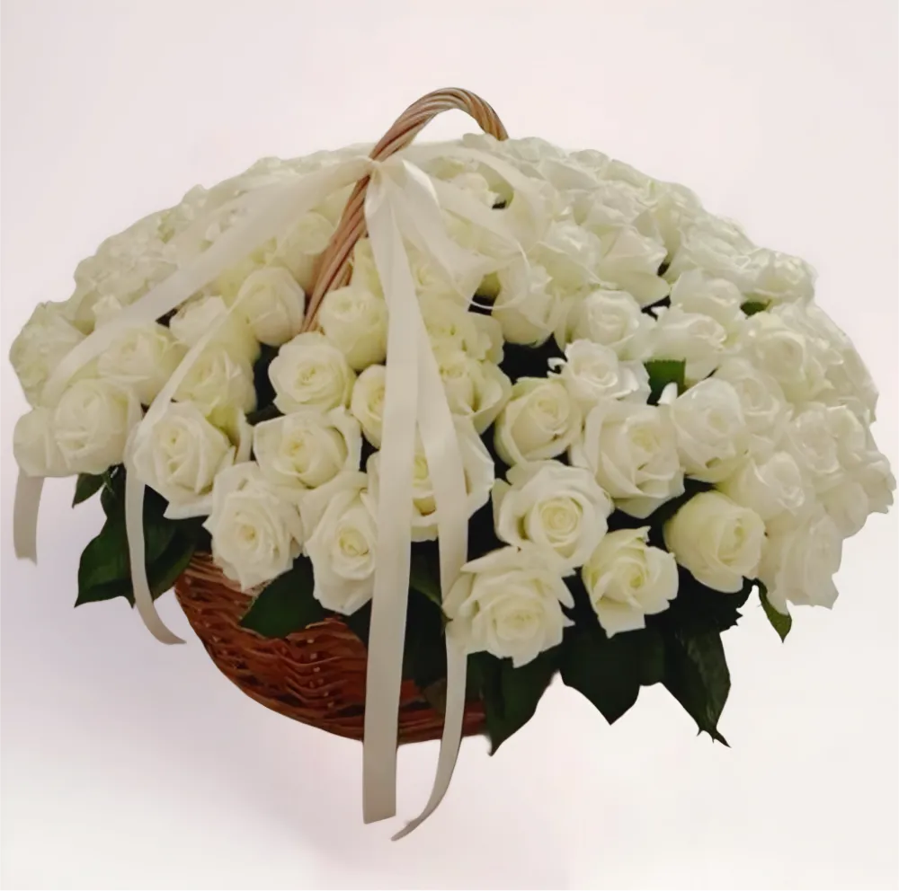 Вы можете купить 101 белую розу в корзине онлайн — мы позаботимся об аккуратной сборке и бесплатной доставке в нужное время.