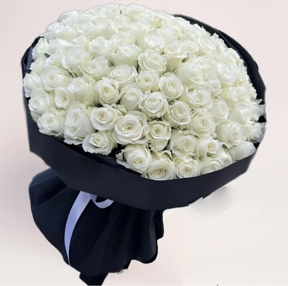 Букет из 101 сортовой розы Вайт Наоми — воплощение аристократической чистоты. Большие молочно-белые бутоны с густыми лепестками создают роскошный, ровный объем. Бутон большой, плотный, раскрывается равномерно. Контрастная черная упаковка подчеркивает благородство цветов. Розы Вайт Наоми долго сохраняют свежесть и форму. Заказывая букет из 101 сортовой розы Вайт Наоми в Алматы у нас, вы можете быть уверены в качестве и своевременности доставки. Наша служба доставки работает круглосуточно, бесплатно развозит ваши заказы по городу без выходных.