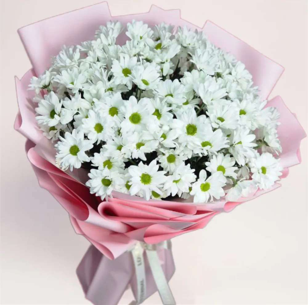 11 ромашковидных хризантем образуют светлый, живой букет с открытой серединкой и чистыми белыми лепестками, который выглядит естественно и непринужденно. Цветы напоминают ромашки, но имеют более плотный объем и аккуратную форму, благодаря чему композиция выглядит собранной и аккуратной. Одиннадцать соцветий создают ощущение щедрости без перегрузки и лишней помпезности. Такой букет подходит для теплых поздравлений, искренних жестов и знаков внимания без формальности. Вы можете купить 11 ромашковидных хризантем с бесплатной доставкой по Алматы, которая работает 24/7.