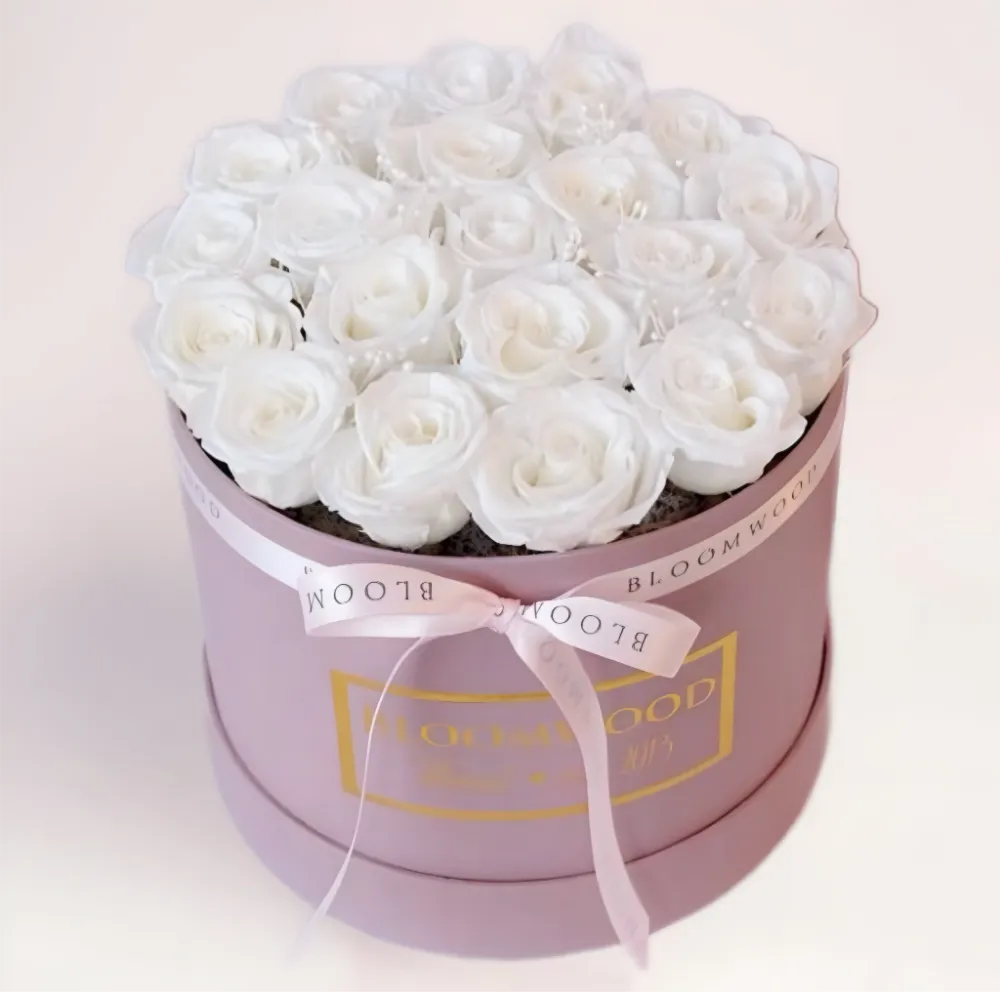 Этот букет из 25 белых роз в коробке Алматы — о балансе и спокойствии. Он не пытается поразить яркостью, но запоминается ощущением правильности. Белые розы всегда читаются как символ искренности, открытости и благородства, а формат коробки делает композицию завершенной.