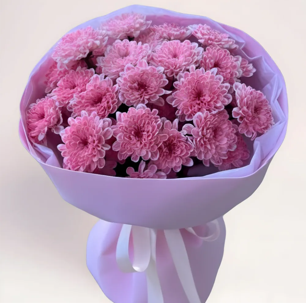 Букет из 7 розовых хризантем Алматы создан для эмоций, которые хочется передать мягко и искренне. Розовый цвет в хризантемах символизирует заботу, душевное тепло и светлую привязанность. Пышные цветы с многослойными лепестками формируют гармоничную округлую композицию, которая выглядит выразительно, но без лишней помпезности.