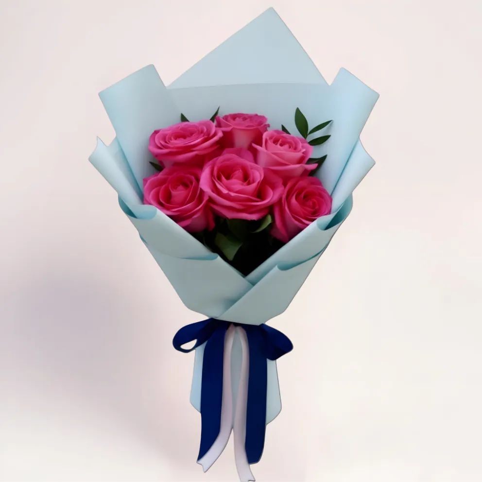 Букет из 5 розовых роз — нежный, камерный подарок, который вызывает искренние эмоции с первого взгляда. Яркие бутоны в мятной упаковке выглядят тепло и современно, а контрастная лента добавляет стильный акцент. Это прекрасный комплимент для свидания, поздравления, благодарности или просто знака внимания, когда хочется сделать день особенно приятным. Гарантируем свежесть соцветий и оперативную доставку по указанному адресу.