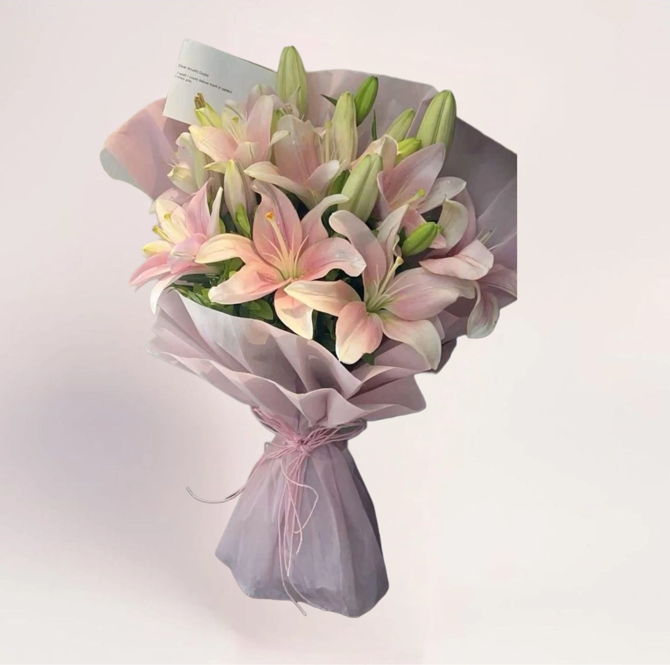 Этот букет из 5 веток розовых лилий часто выбирают в ситуациях, когда хочется выглядеть уместно и со вкусом. Он производит сильное эмоциональное впечатление. Пять веток лилий выглядят объемно благодаря крупным цветам, поэтому композиция кажется продуманной и завершенной. Такой формат подходит для личных моментов, камерных событий или как жест внимания, не требующий объяснений.
