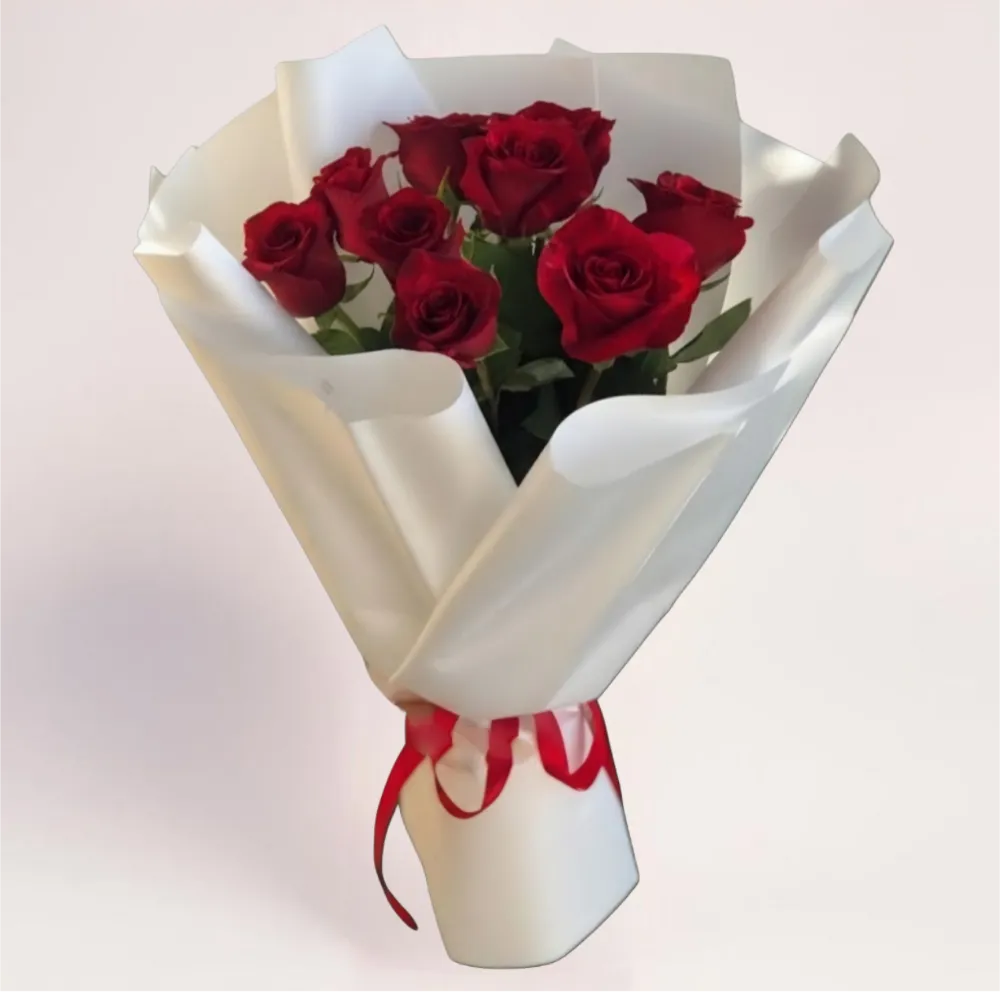 Для свидания, благодарности или короткого напоминания о себе – 9 красных роз — это формат, который подходит почти на все случаи жизни. Каждый цветок подобран вручную, стебли одного размера, бутоны плотные, без сломанных лепестков. Светлая упаковка делает букет аккуратным и минималистичным.