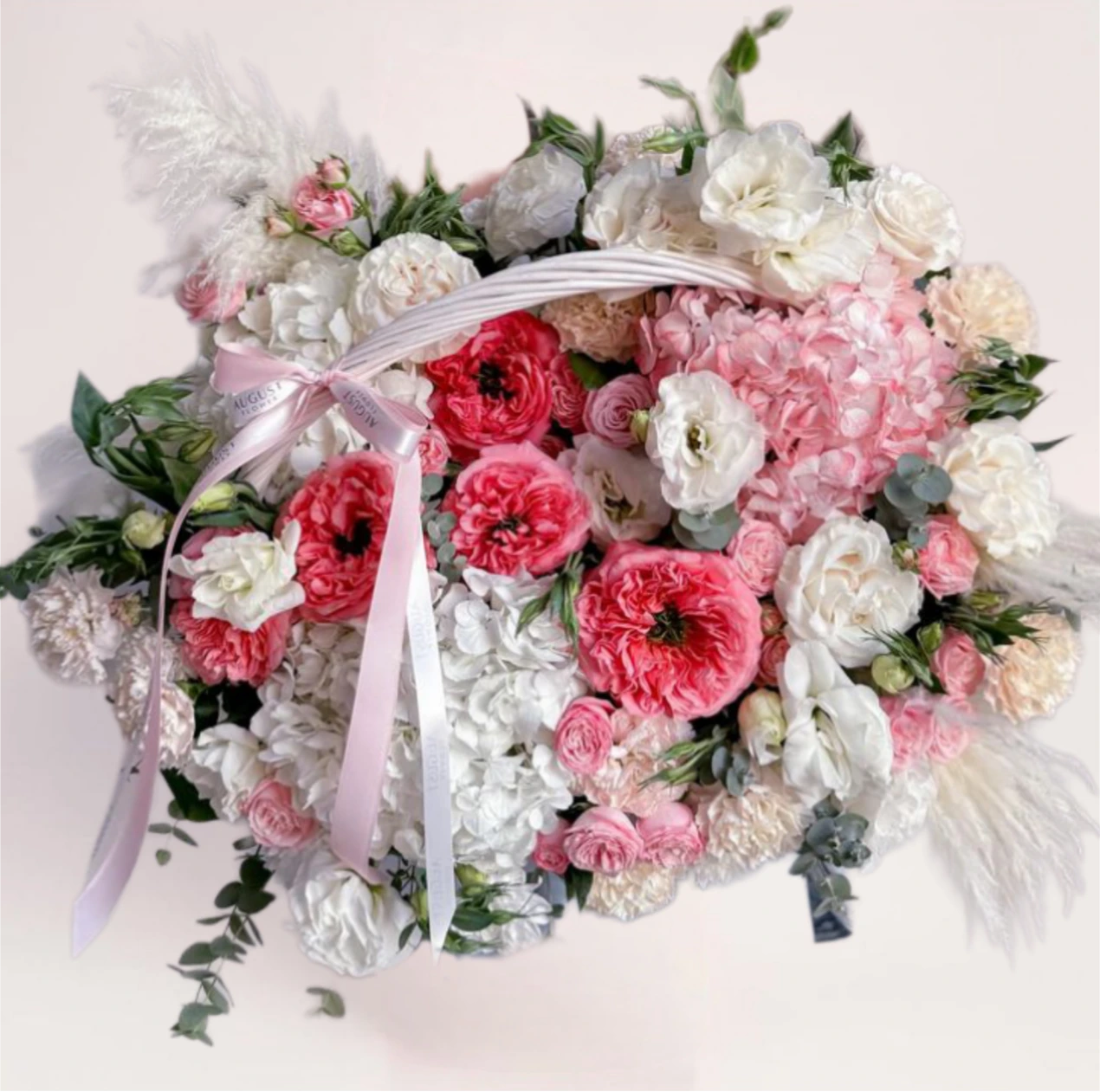 Цветочная корзина в пастельных оттенках — выразительный и удобный подарок для поздравления, торжества или особого повода.