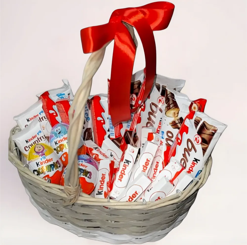 Подарочная сладкая корзина с шоколадом и сладостями — универсальный подарок для детей и взрослых с доставкой по Алматы.